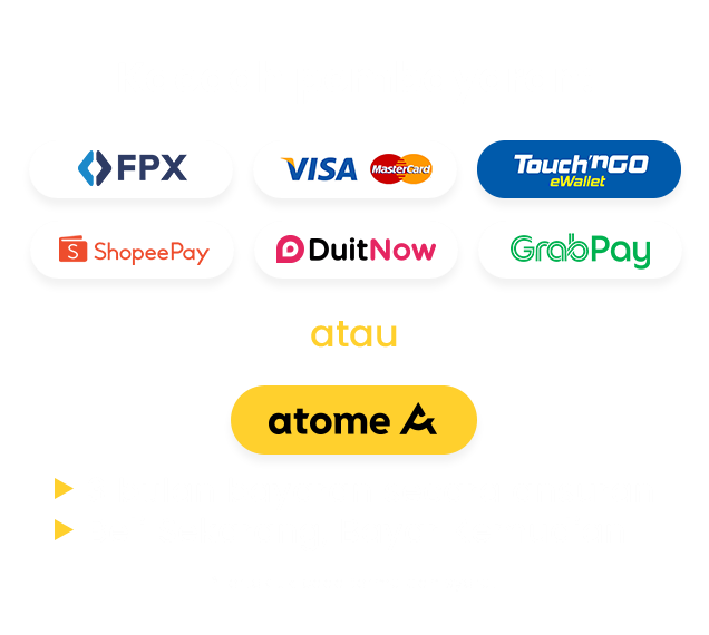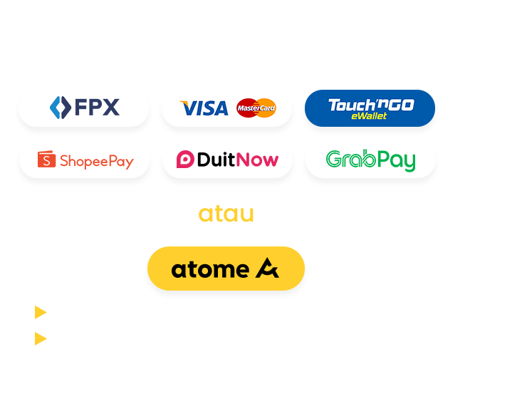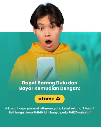 Buy now pay later with Atome. The bill will be split into three easy payments. No hidden fees, 0% interest.